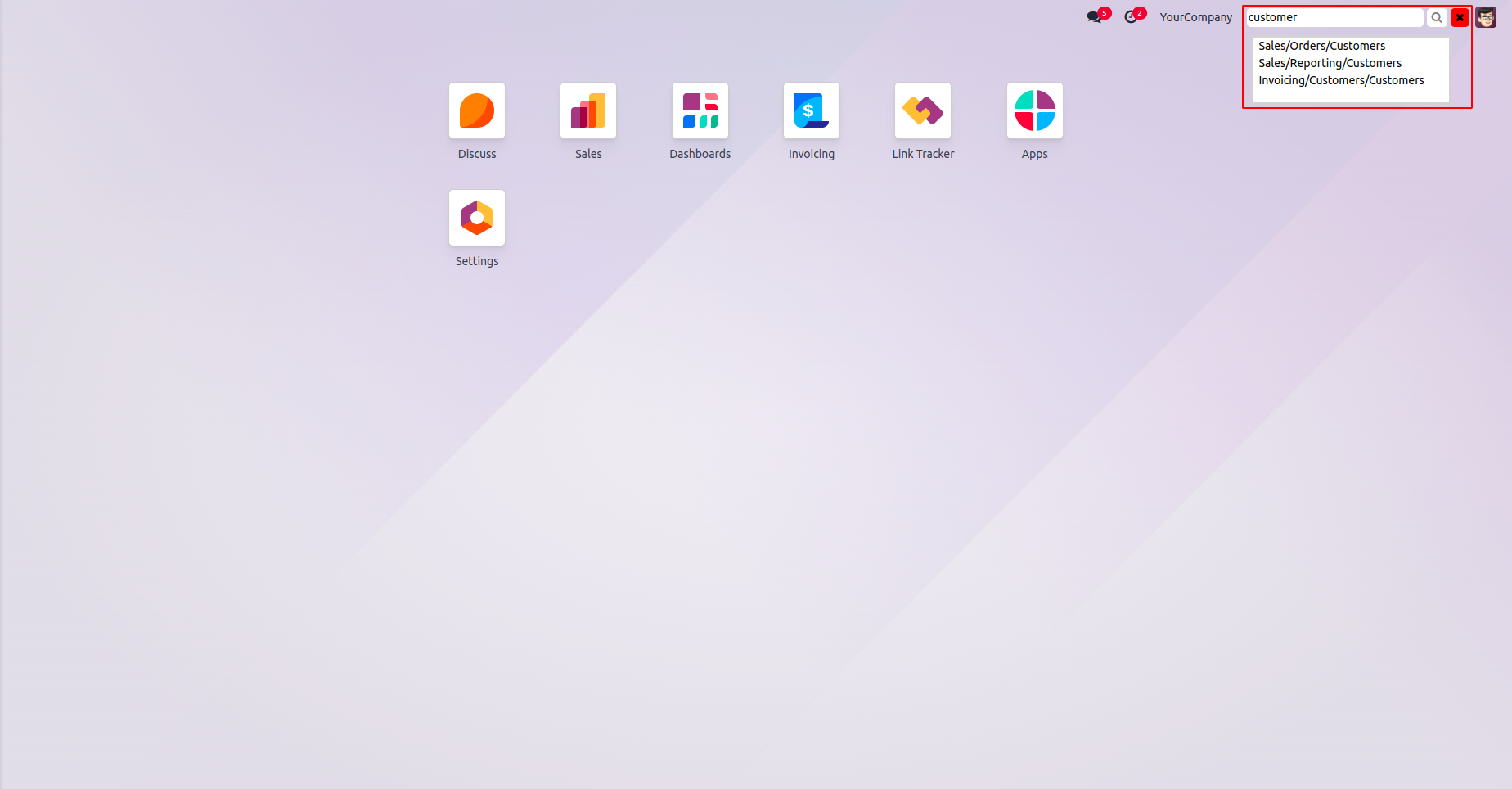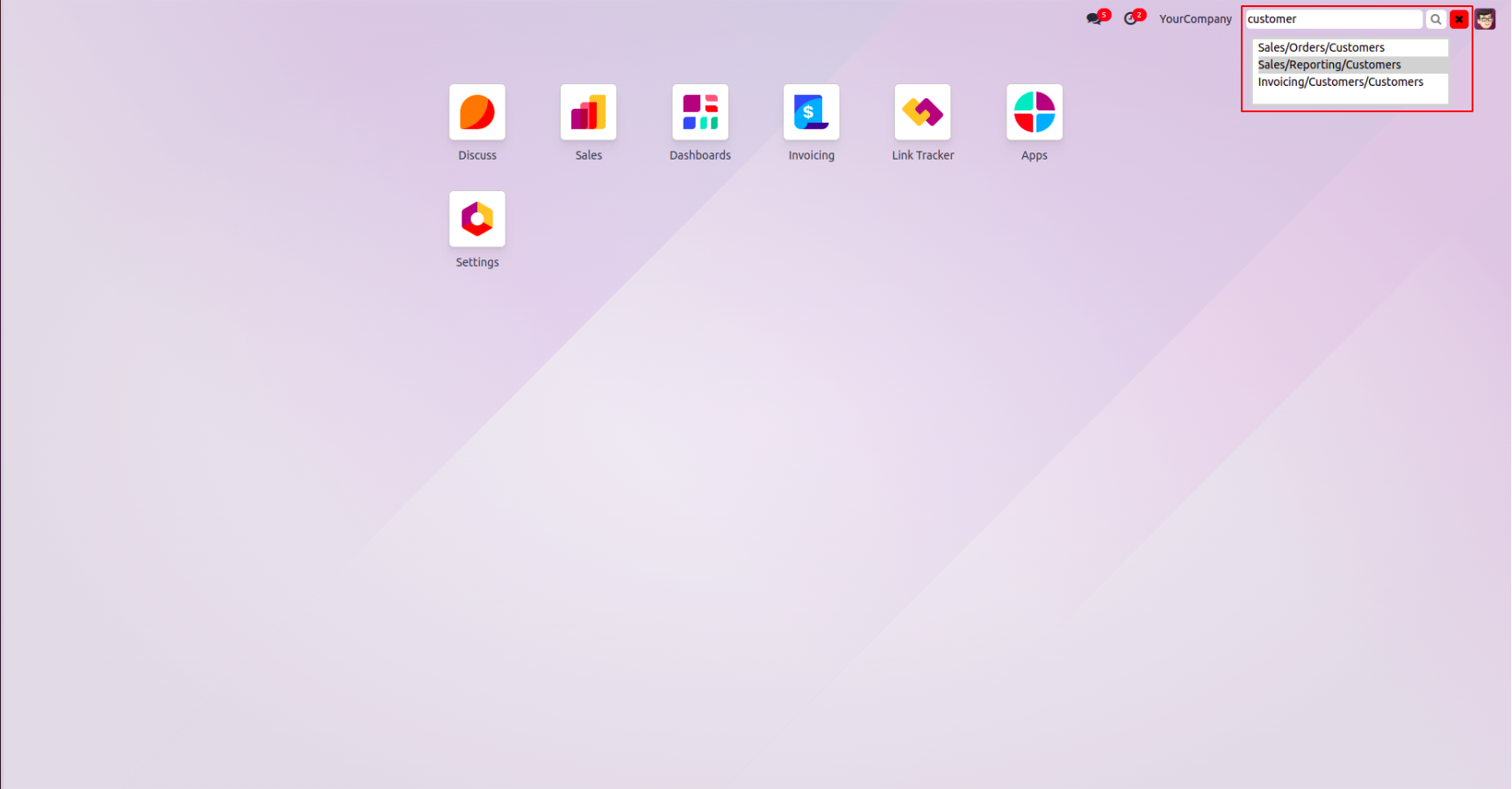 Type the menu name in the displayed search box and click the adjacent search button.